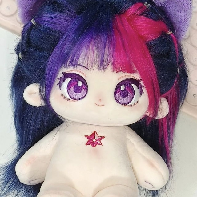 綿人形 無属性 ぬいぐるみ 20cm 着せ替えぬいぐるみ 着せ替え人形 紫悅 紫とローズレッドのバイカラーヘアと紫の瞳コットンドール cotton doll