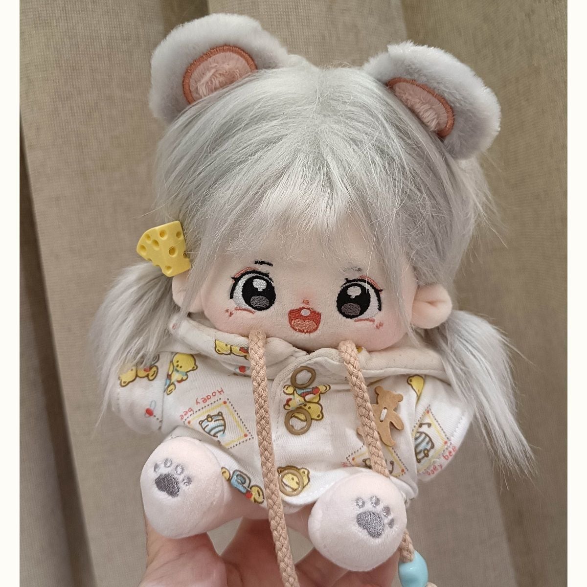 綿人形 20cm 着せ替えぬいぐるみ 無属性 着せ替え人形 白髪と黒い目女の子 コットンドール芝芝 cotton doll