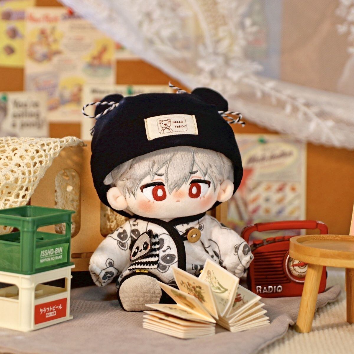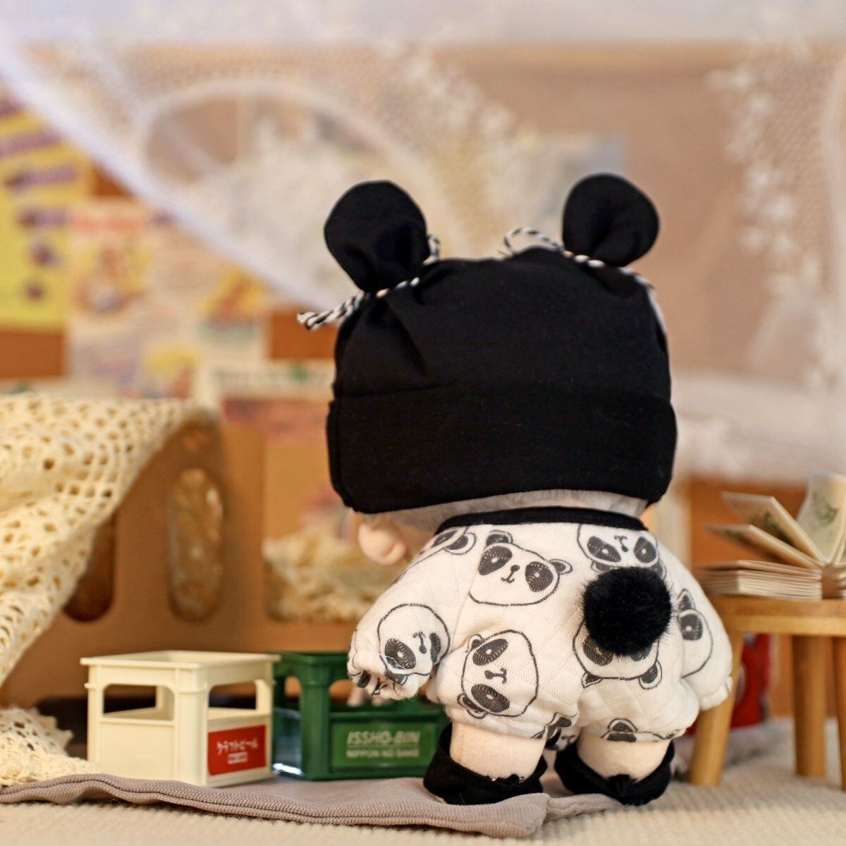 3点セット 20cm 着せ替えぬいぐるみ用服 パンダ ジャンプスーツ 帽子 靴下コスチューム 着せ替え人形洋服 人形服 ミニ洋服 綿人形衣装 ドールウェア アクセサリー
