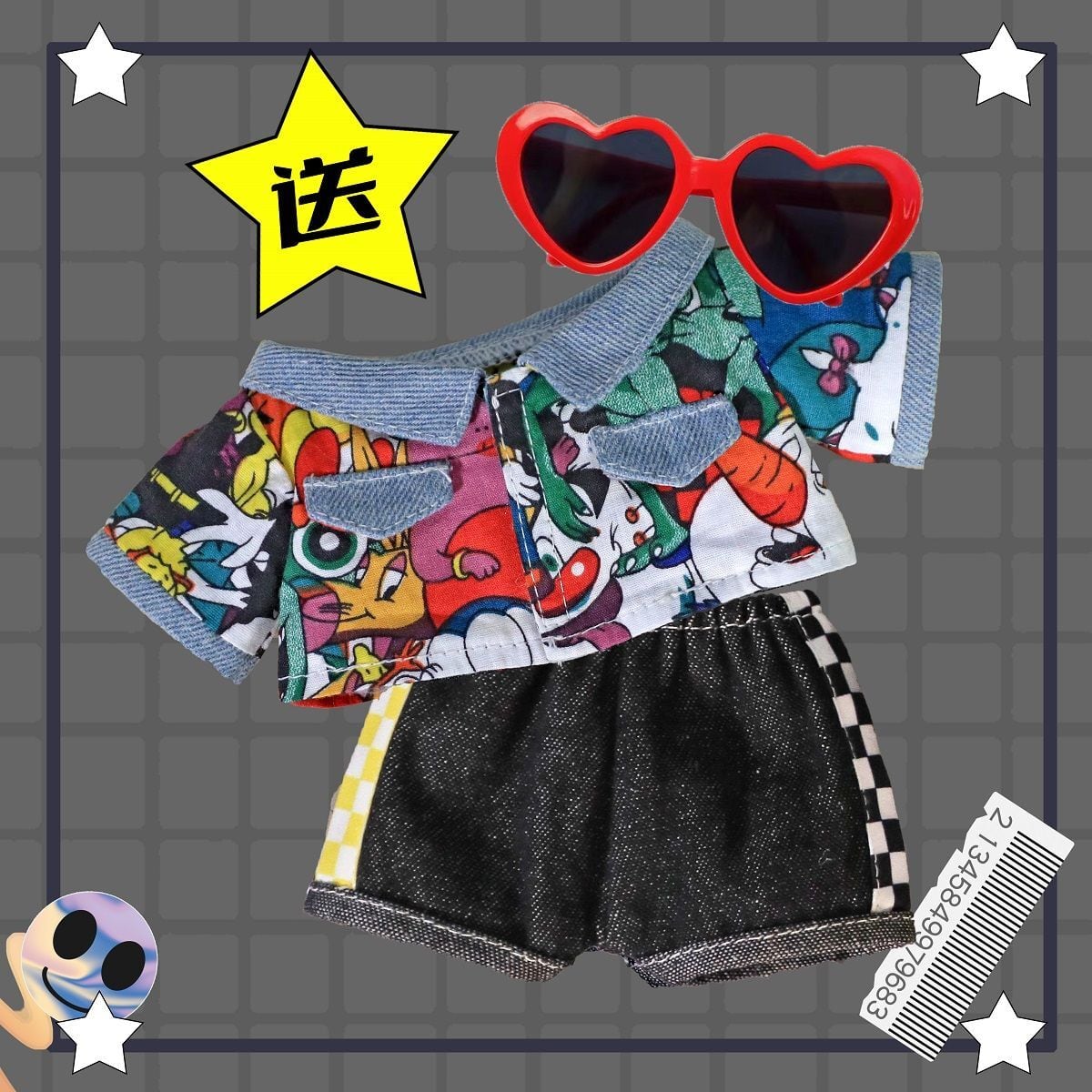 3点セット 20cm 着せ替えぬいぐるみ用服 シャツ ジーンズ メガネコスチューム 着せ替え人形洋服 人形服 ミニ洋服 綿人形衣装 ドールウェア アクセサリー