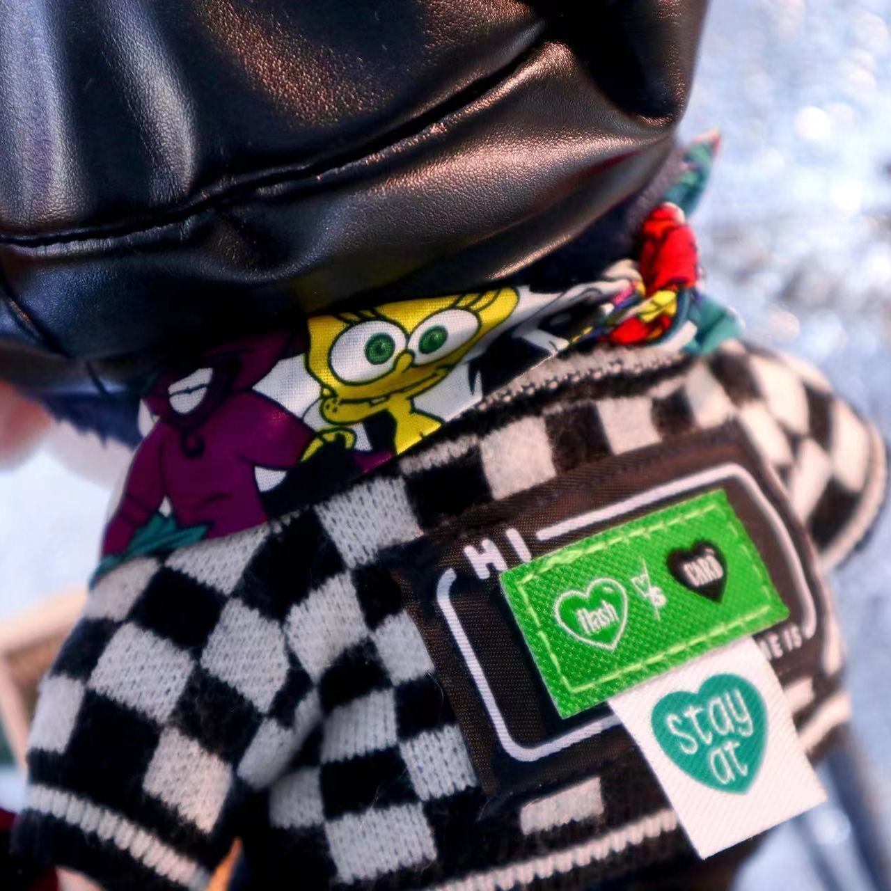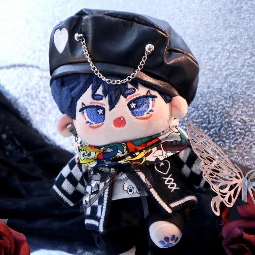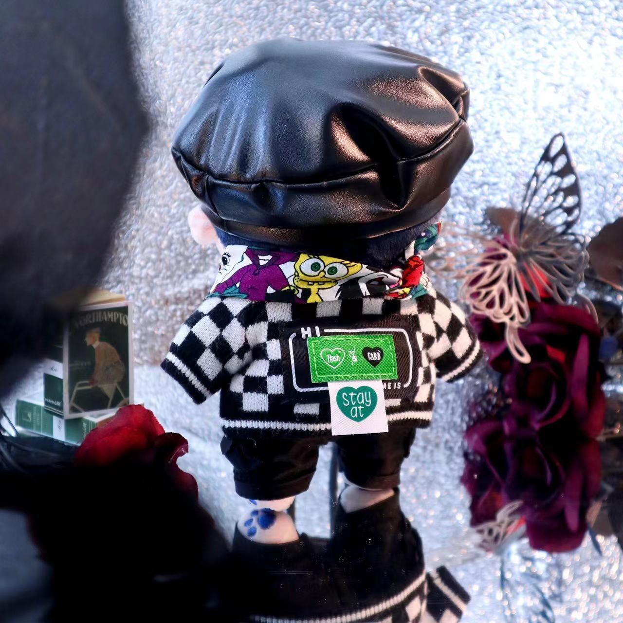 4点セット 20cm 着せ替えぬいぐるみ用服 コスチューム 着せ替え人形洋服 セーター 革の帽子 オーバーオール 三角スカーフ