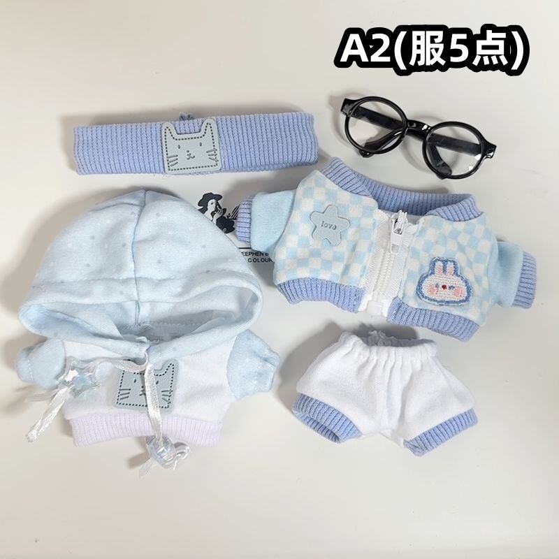 3/5点セット 10cm 着せ替えぬいぐるみ用服 コスチューム ヘアアクセサリー 帽子 パーカー ショートパンツ 眼鏡
