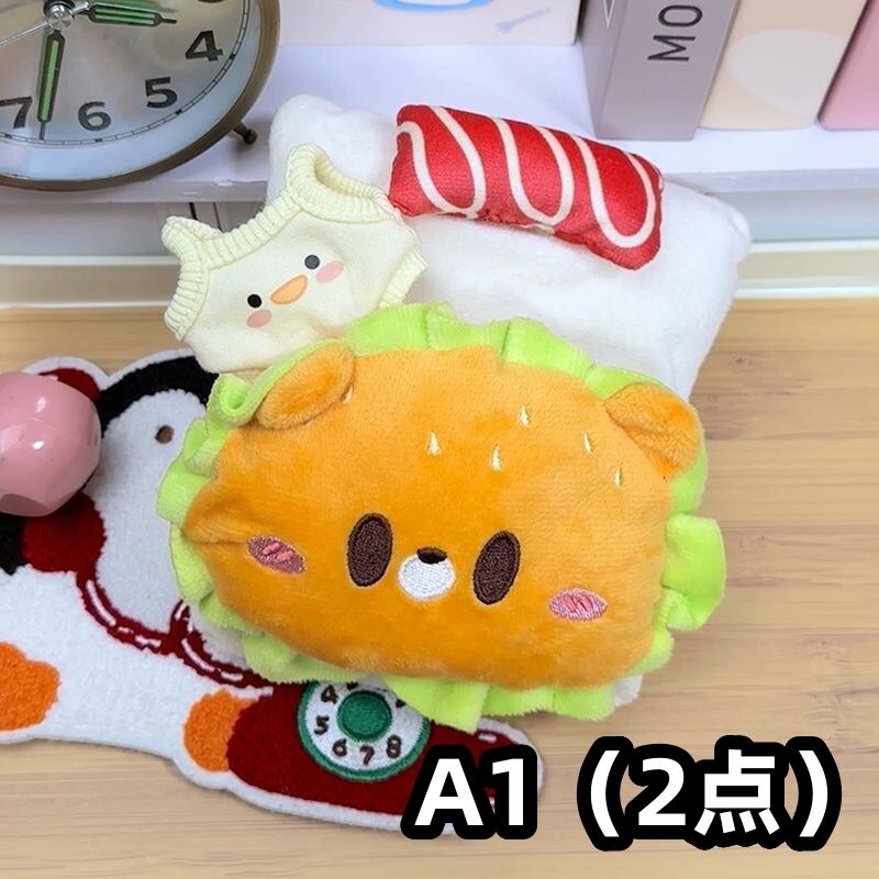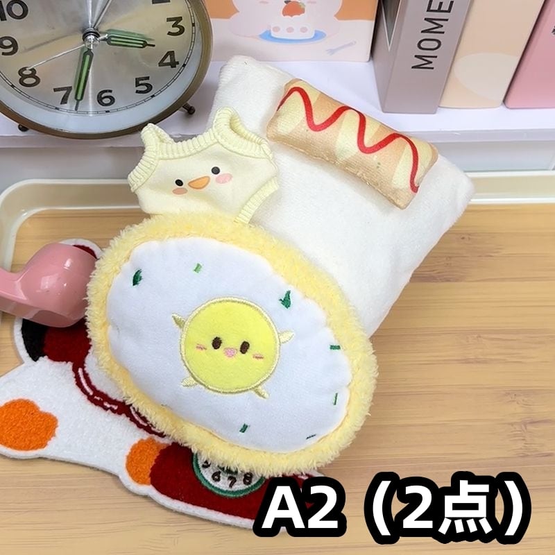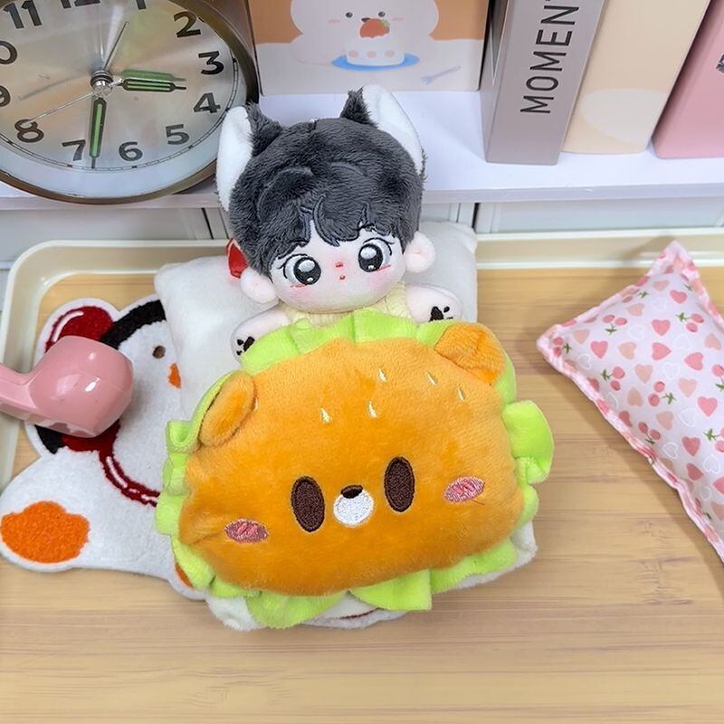 2点セット 10cm 着せ替えぬいぐるみ用ベッド ハンバーガー 卵 寝具 マットレス 枕