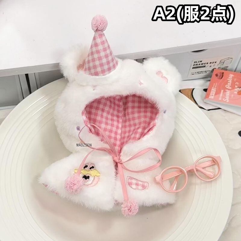 2点セット 10cm 着せ替えぬいぐるみ用服 コスチューム 眼鏡 ポンチョパーカー