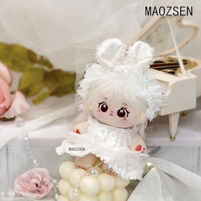 3点セット 10cm 着せ替えぬいぐるみ用服 コスチューム 眼鏡 ウェディングドレス うさ耳カチューシャ