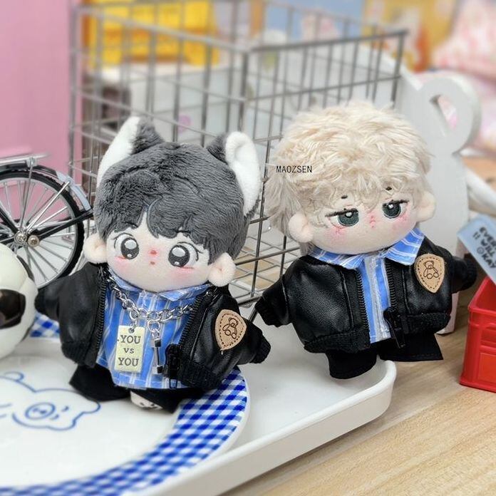 5点セット 10cm 着せ替えぬいぐるみ用服 コスチューム 眼鏡 青いストライプのシャツ コート ショートパンツ ネックレス
