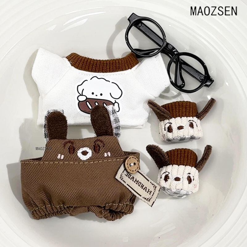 4点セット 10cm 着せ替えぬいぐるみ用服 ビブパンツ Tシャツ ソックス アイウェア コスチューム 着せ替え人形洋服 人形服 ミニ洋服 綿人形衣装 ドールウェア アクセサリー