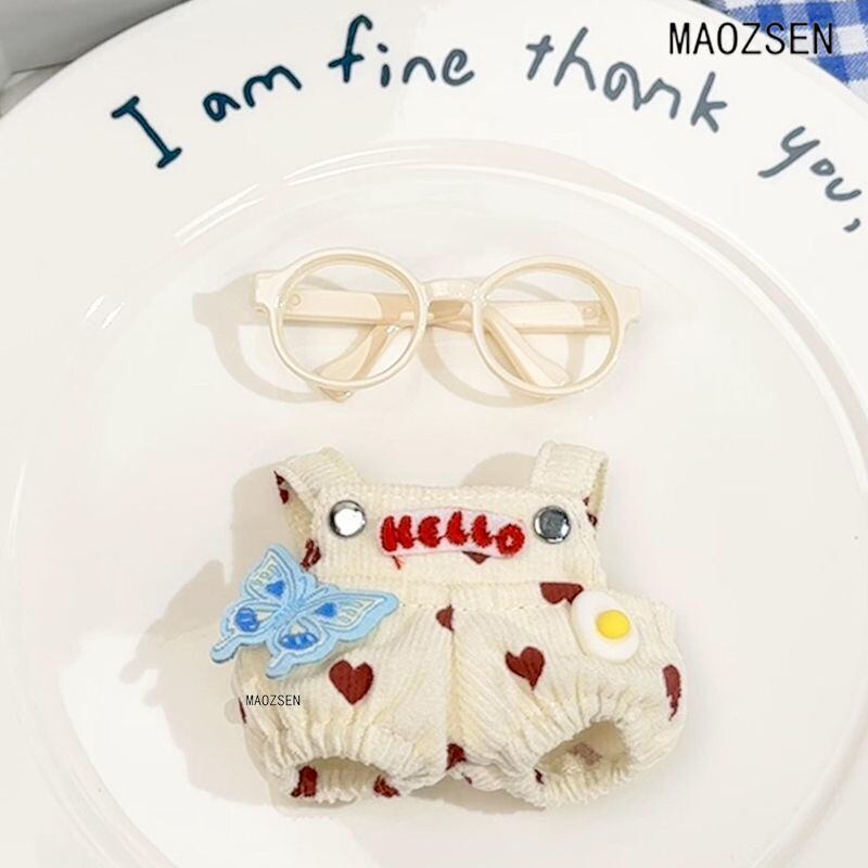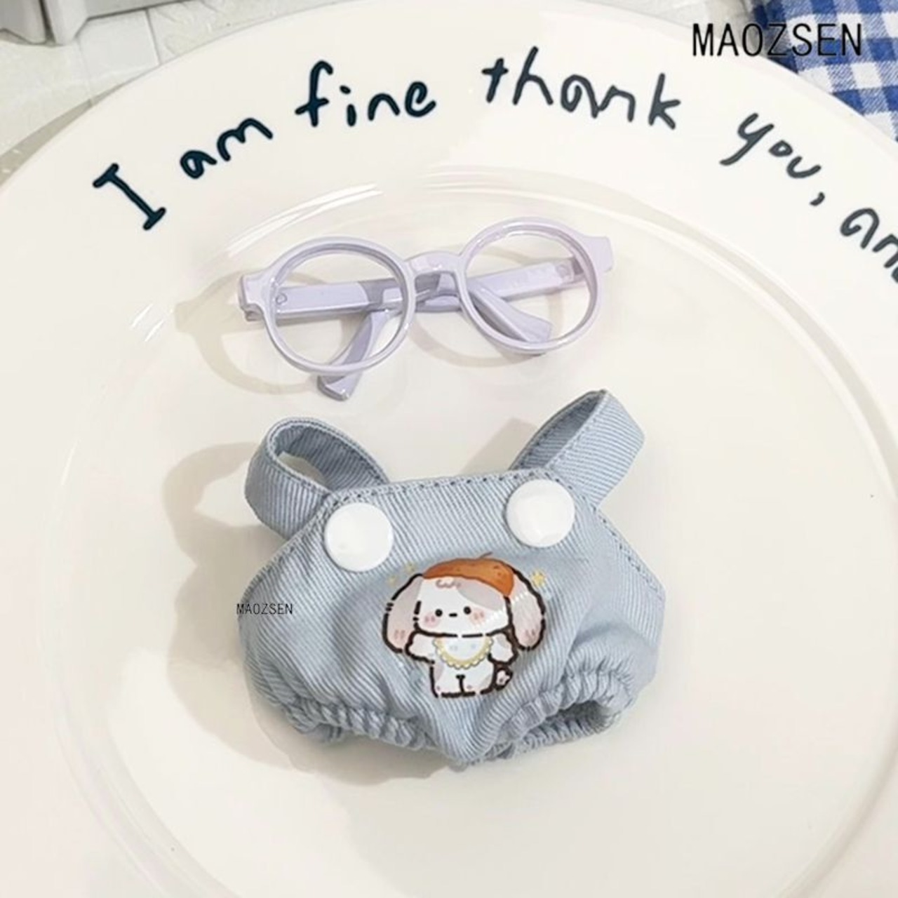 2点セット 10cm 着せ替えぬいぐるみ用服 オーバーオール 眼鏡 コスチューム 着せ替え人形洋服 人形服 ミニ洋服 綿人形衣装 ドールウェア アクセサリー