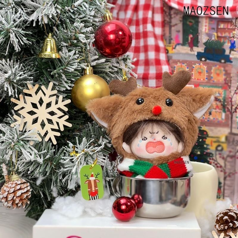 秋冬4点セット 10cm 着せ替えぬいぐるみ用服 クリスマスヘラジカの頭の帽子 セーター スカーフ 眼鏡コスチューム 着せ替え人形洋服 人形服 ミニ洋服 綿人形衣装 ドールウェア アクセサリー
