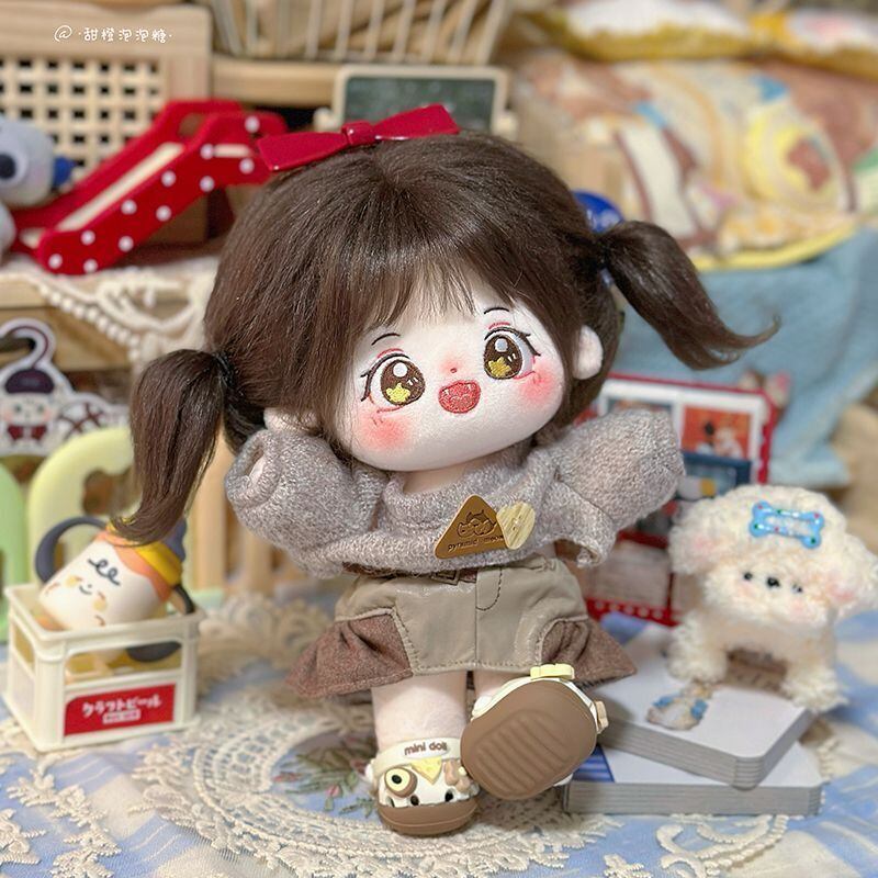 綿人形 20cm 着せ替えぬいぐるみ 無属性 着せ替え人形 茶色の髪と茶色の目女の子 摘星 コットンドール cotton doll