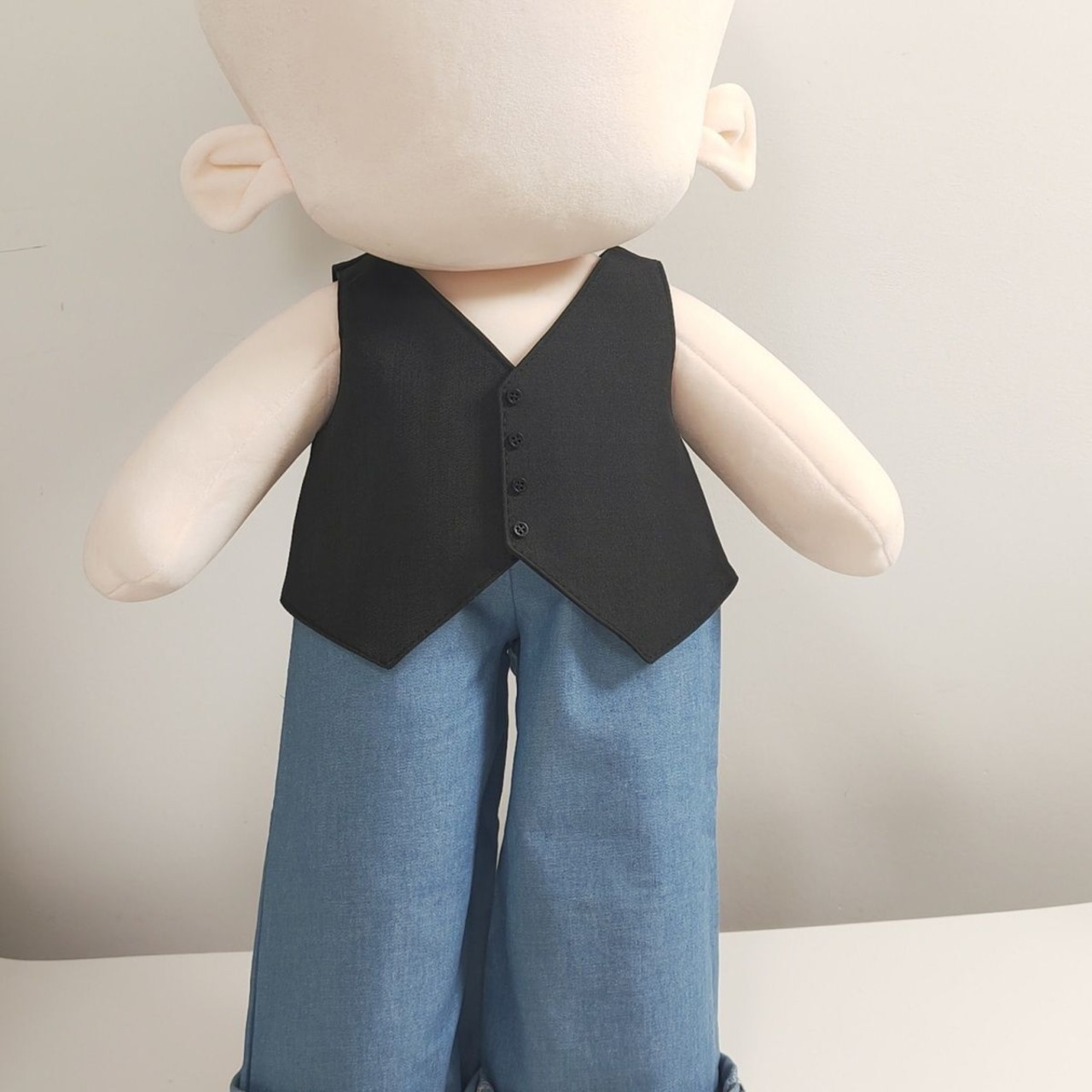 関節人形服 60cm 着せ替えぬいぐるみ用服 黒のベスト ジーンズコスチューム 着せ替え人形洋服 ミニ洋服 綿人形衣装 ドールウェア アクセサリー
