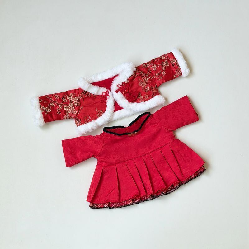 中国の旧正月レッドセット 着せ替え人形洋服 40cm 着せ替えぬいぐるみ用服 座っている人形服 綿人形衣装 ドールウェア アクセサリー