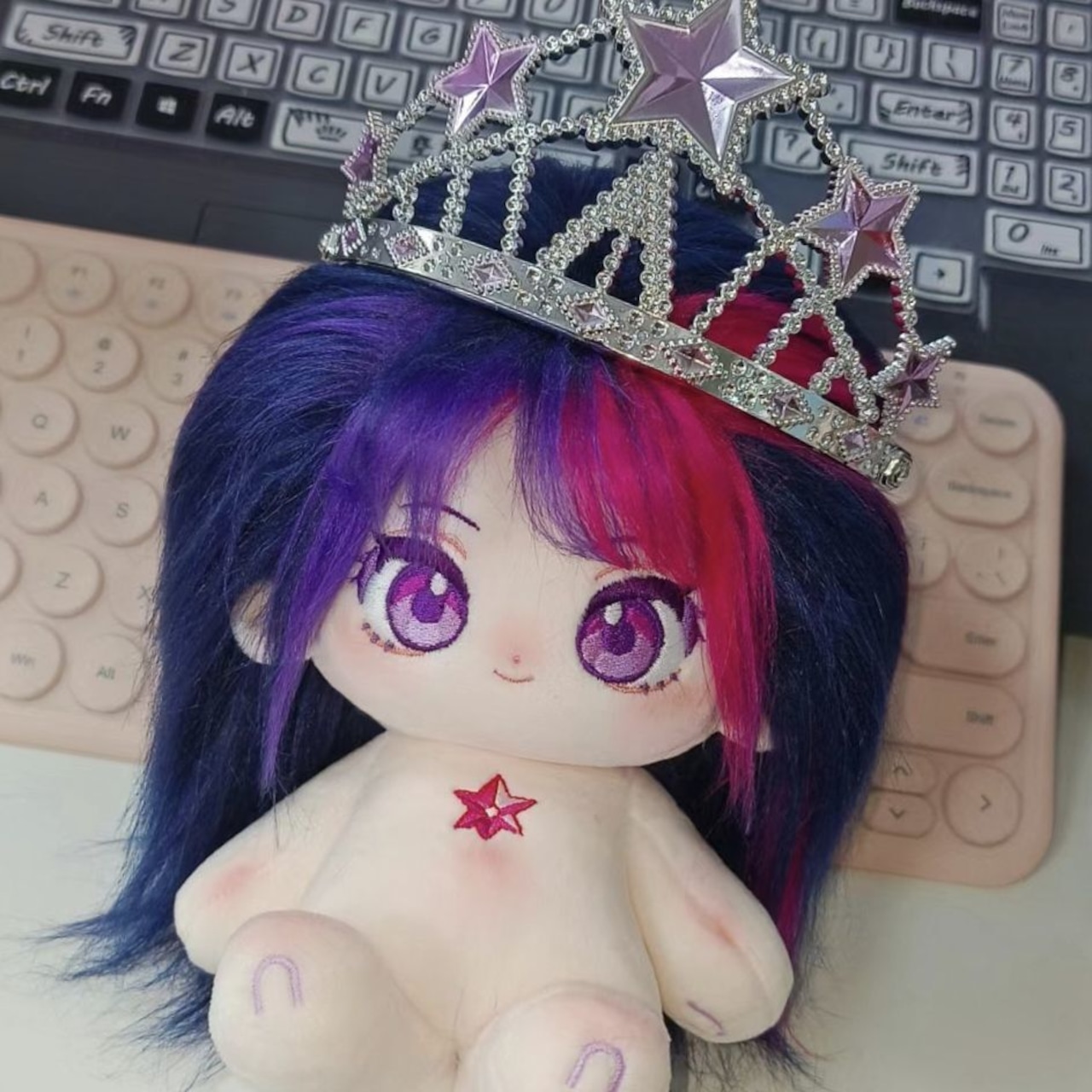 綿人形 無属性 ぬいぐるみ 20cm 着せ替えぬいぐるみ 着せ替え人形 紫悅 紫とローズレッドのバイカラーヘアと紫の瞳コットンドール cotton doll