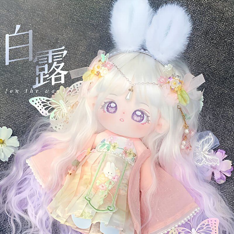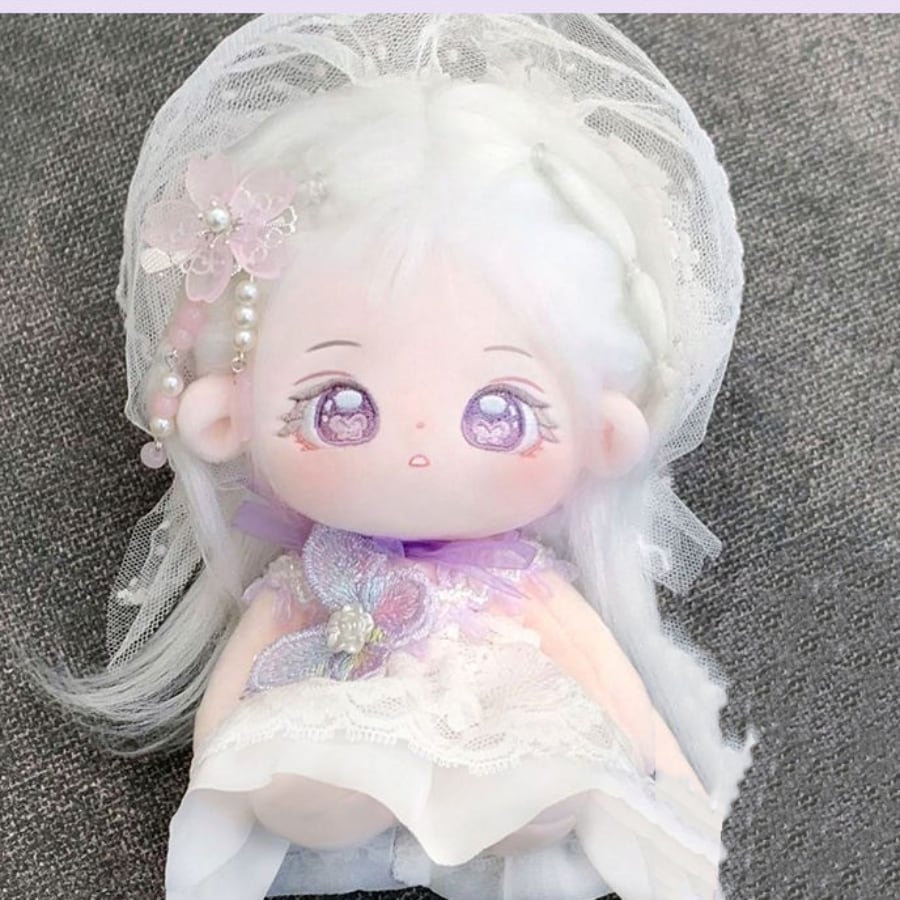 綿人形 無属性 ぬいぐるみ 20cm 着せ替えぬいぐるみ 着せ替え人形 白露 白い髪と紫色の目女の子 コットンドール cotton doll