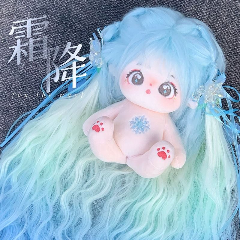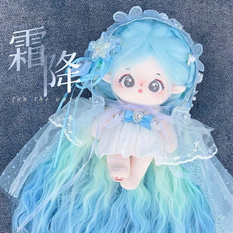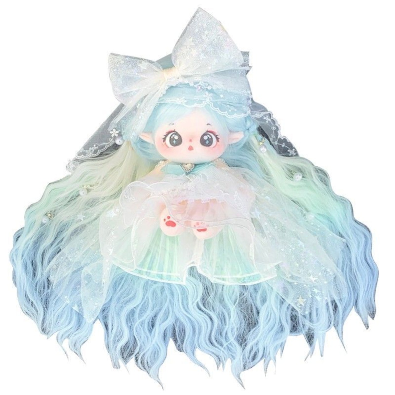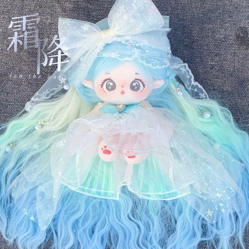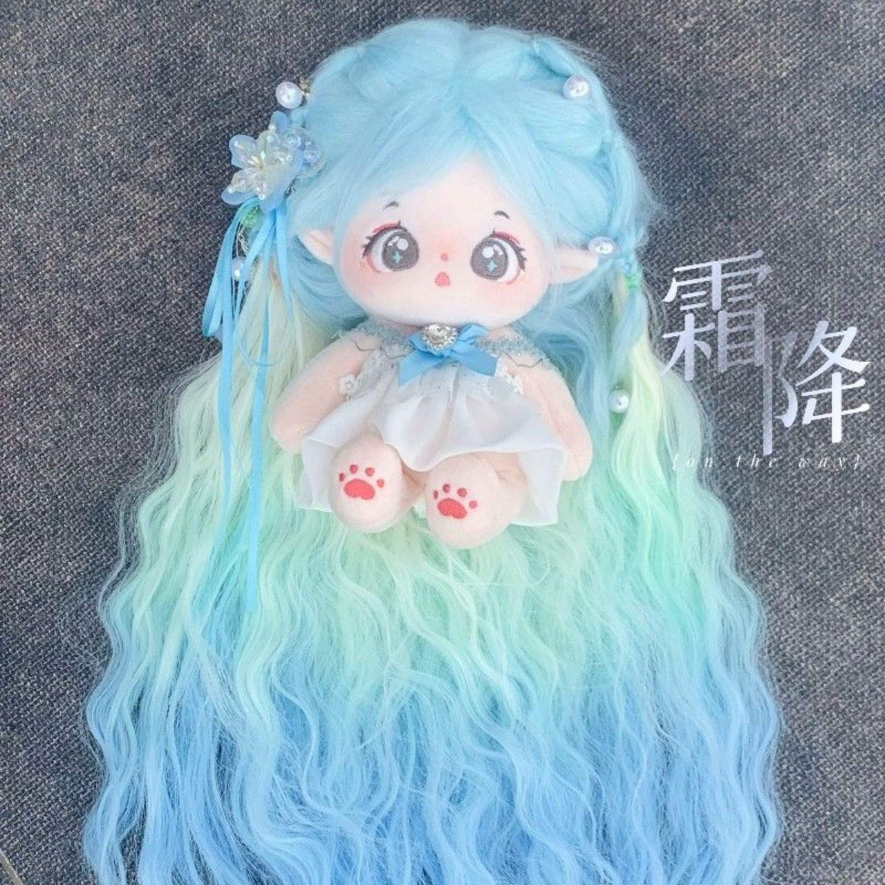 綿人形 無属性 ぬいぐるみ 20cm 着せ替えぬいぐるみ 着せ替え人形 ブルーヘアグラデーションウィッグ女の子 コットンドール 霜降 cotton doll