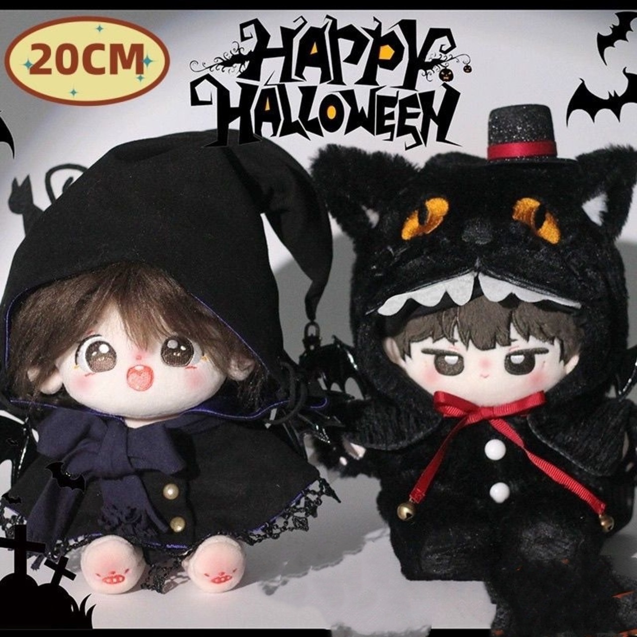 ハロウィン黒魔女黒猫セット 着せ替え人形洋服 10cm 着せ替えぬいぐるみ用服 人形服 綿人形衣装 ドールウェア アクセサリー