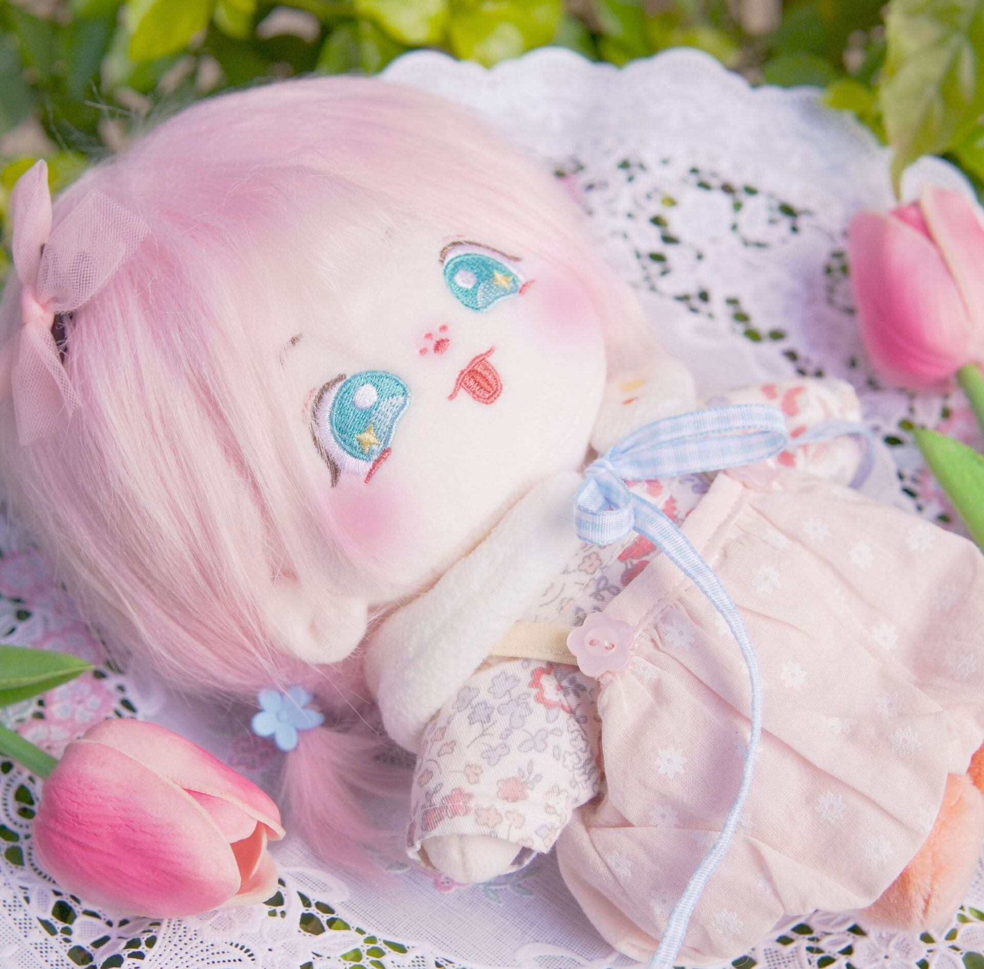 20CM ぬいぐるみ 無属性 着せ替え人形 コットンドール 綿人形 ピンク髪緑の目星の目女の子 タオ イン