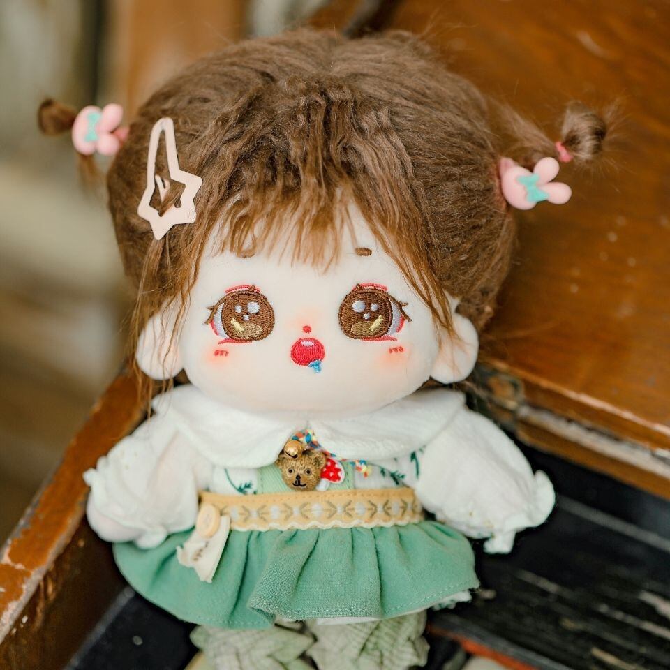 20CM ぬいぐるみ 無属性 着せ替え人形 コットンドール 綿人形 茶色の巻き毛茶色の目よだれ女の子 キャラメルプリン