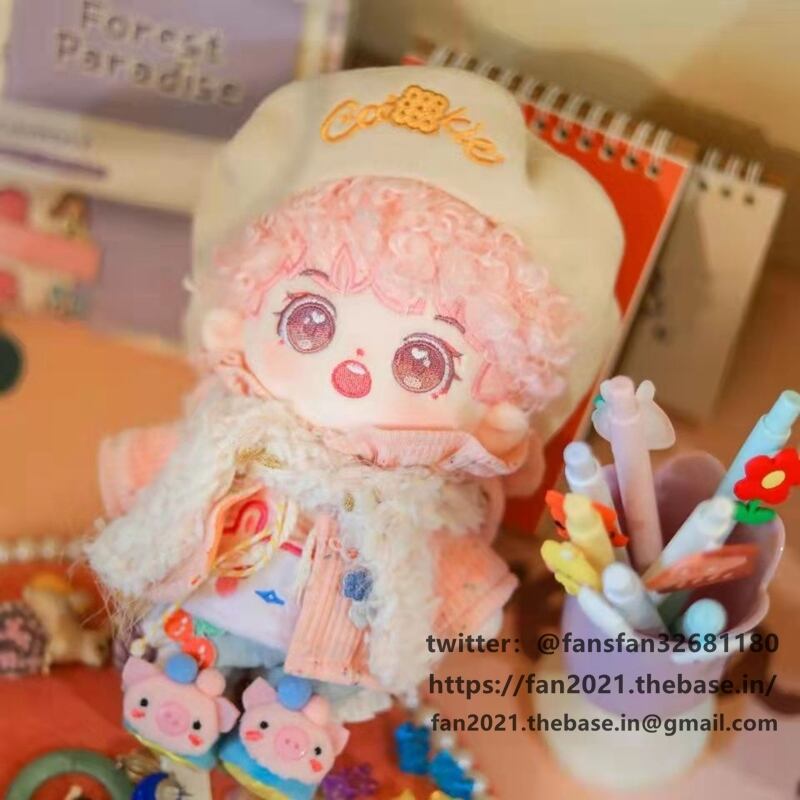 20CM ぬいぐるみ 無属性 着せ替え人形 コットンドール 綿人形 ピンクの巻き毛男の子 いちごスムージー