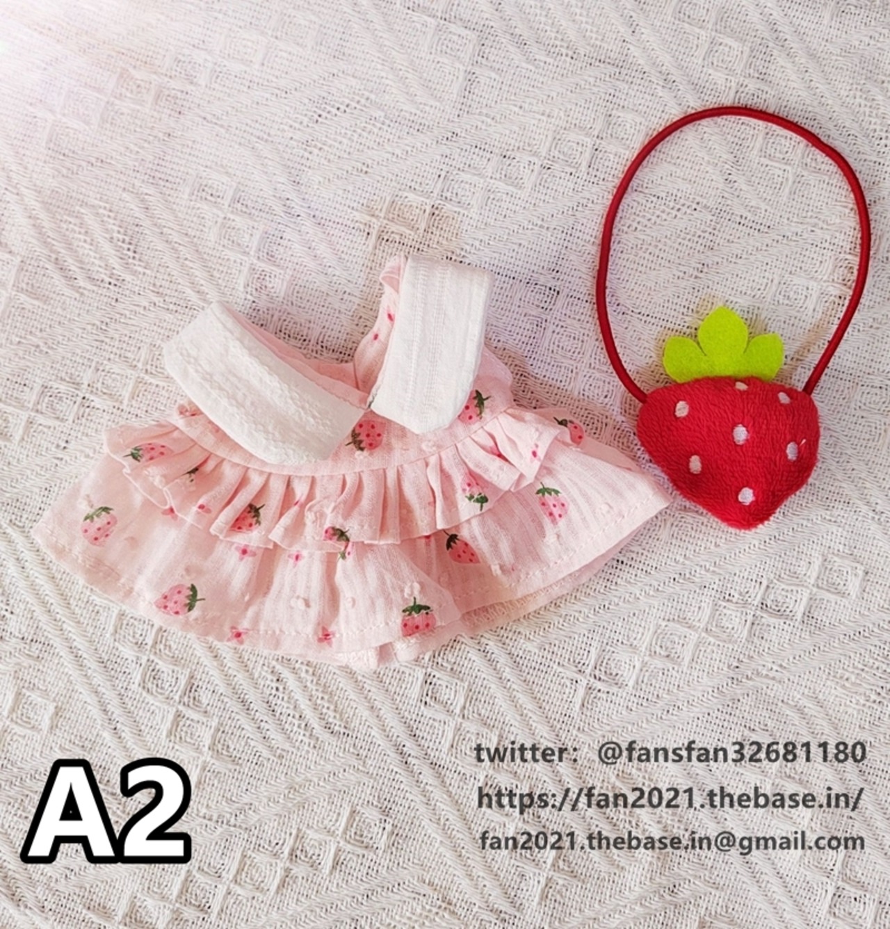 20CM ぬいぐるみ用服 2点セット ミニ洋服 女の子 いちごスカート いちごバッグ 日常服 着せ替え人形服
