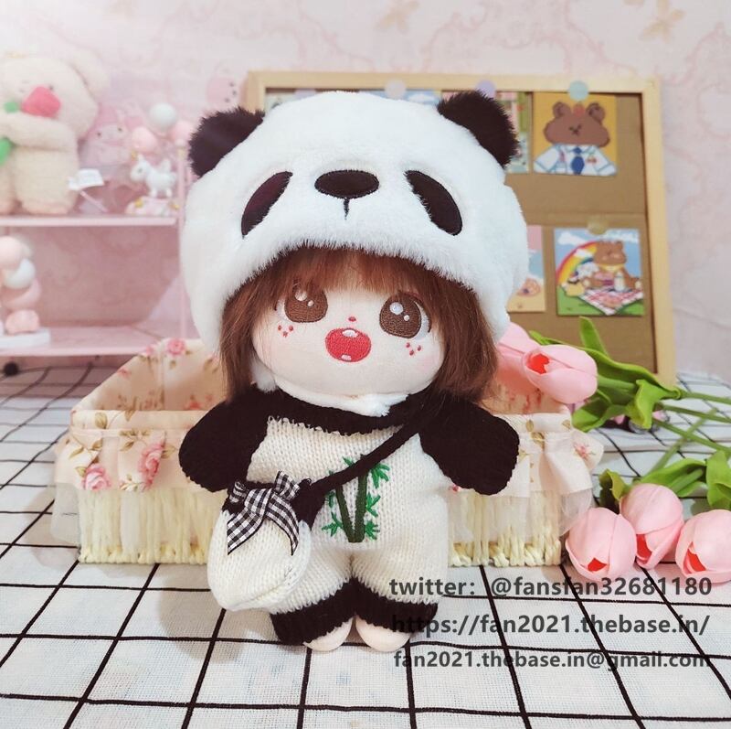 20CM ぬいぐるみ用服 4点パンダセット ミニ洋服 秋冬 パンダ帽子 つなぎ 白いキャンバスシューズ 日常服人形 洋服 韓国ファッション アイドル衣装 ドールウェア 着せ替え人形服