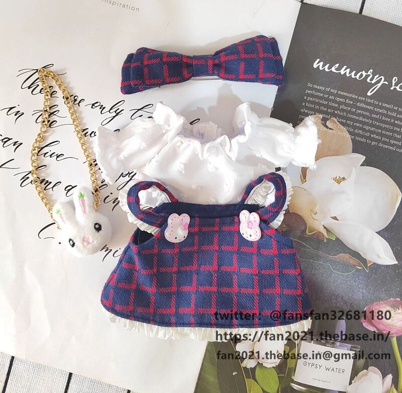 5点セットうさぎ20CM ぬいぐるみ用服 いちごスーツサスペンダースカート姫ボトムスシャツ ミニ洋服 日常服人形 洋服 着せ替え人形服
