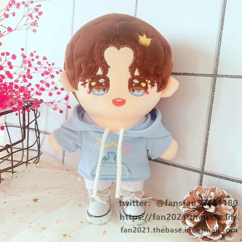 20CM ぬいぐるみ用服 3点セット ブルーのセーター 白いキャンバスシューズ 陳情令 肖戰 シャオ ザン アイドル衣装 ドールウェア 着せ替え人形 服 靴 同人ぬいぐるみ服 アクセサリー
