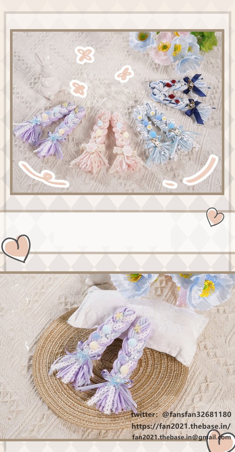 三つ編みかつら 20cm ぬいぐるみ用ウィッグ コットンドール飾り小物
