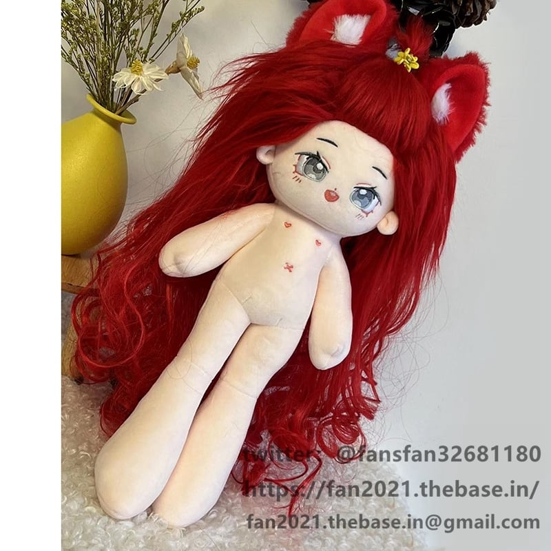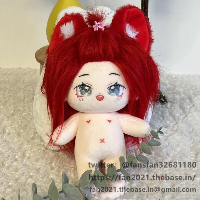 20CM ぬいぐるみ 無属性 着せ替え人形 コットンドール 綿人形 赤い長い髪獣耳灰色の目女の子