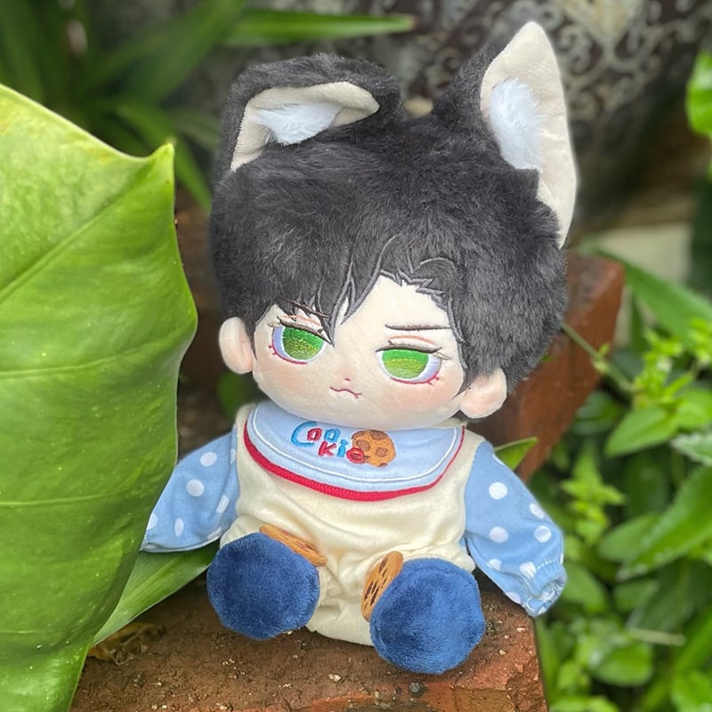 20CM ぬいぐるみ 無属性 着せ替え人形 コットンドール 綿人形 黒髪緑の目男の子 キツネ 黒い獣耳