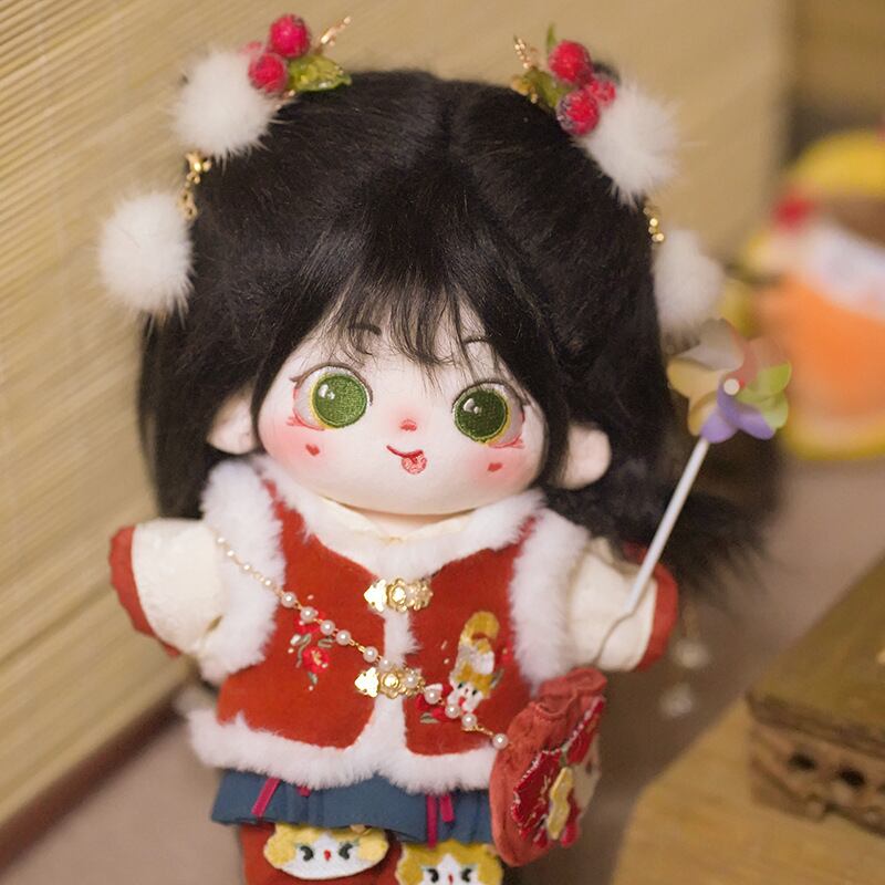 20CM ぬいぐるみ 無属性 着せ替え人形 コットンドール 綿人形 黒髪緑の目いたずらな舌出し女の子 チン チョウ