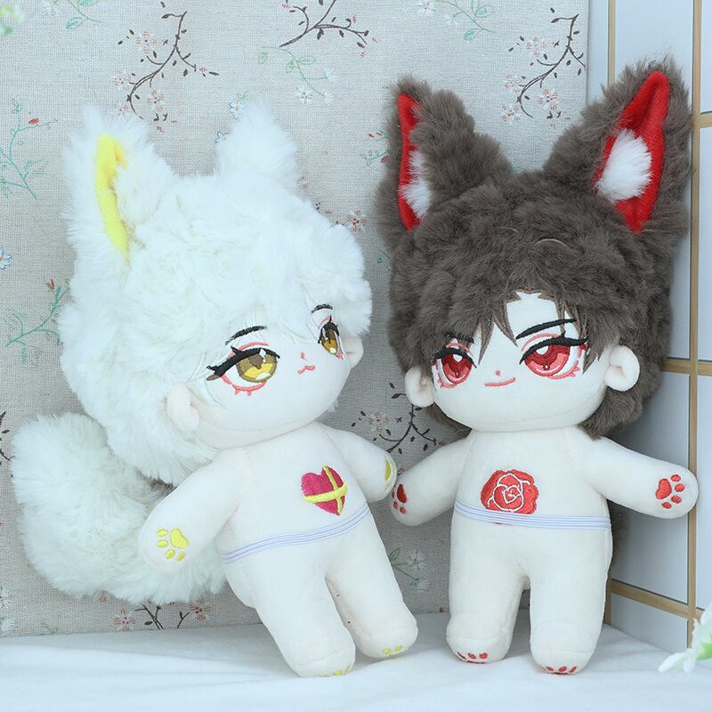 20CM ぬいぐるみ 無属性 綿人形 イケメン 着せ替え人形 コットンドール 綿人形 獣耳獣尾付け男の子 赤眼黒髪