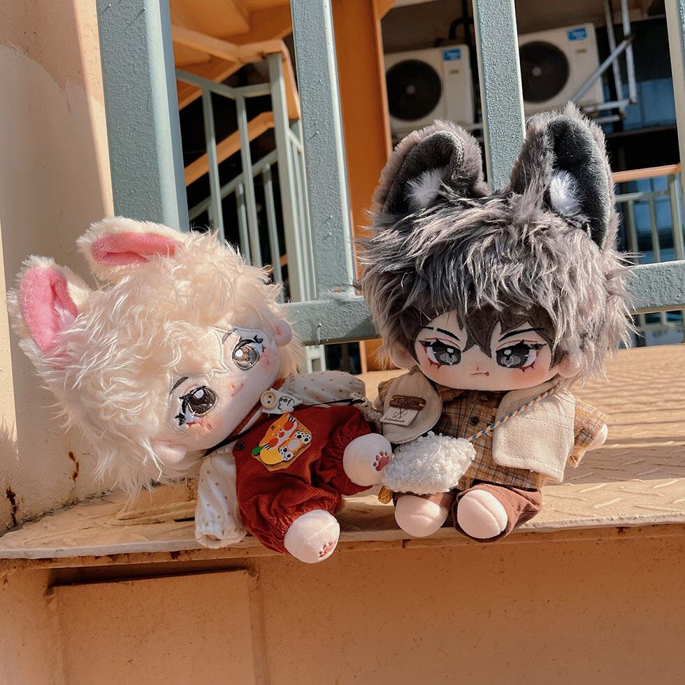 20CM ぬいぐるみ 無属性 着せ替え人形 白髪 獣耳 黒い目 コットンドール 綿人形 黒髪黒い目獣耳男の子 白米米 黒米米 cotton doll