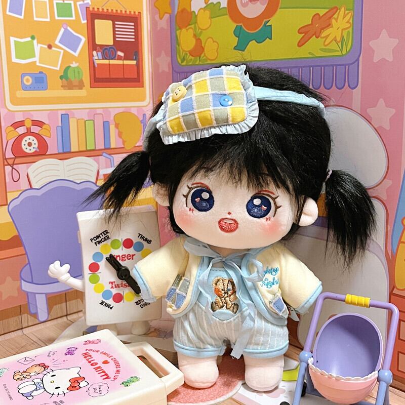 20CM ぬいぐるみ 無属性 着せ替え人形 コットンドール 綿人形 甜茶ケーキ 黒髪紺色の目女の子 cotton doll