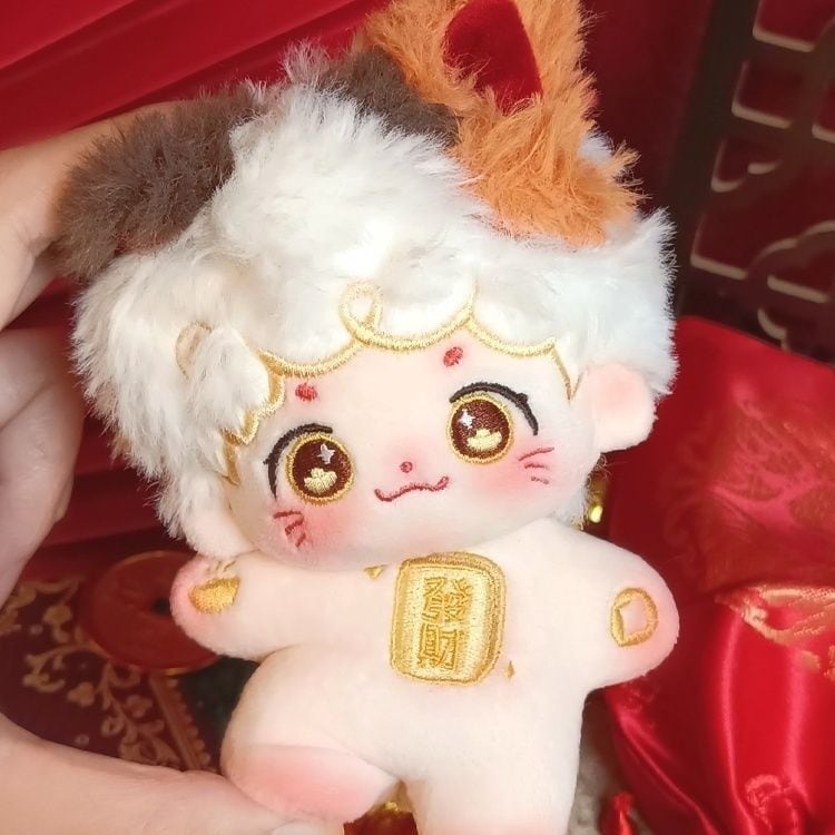 10CM ぬいぐるみ 無属性 着せ替え人形 コットンドール 綿人形 茶色の目白髪二色獣耳財ニャー 獣耳付け男の子 cotton doll