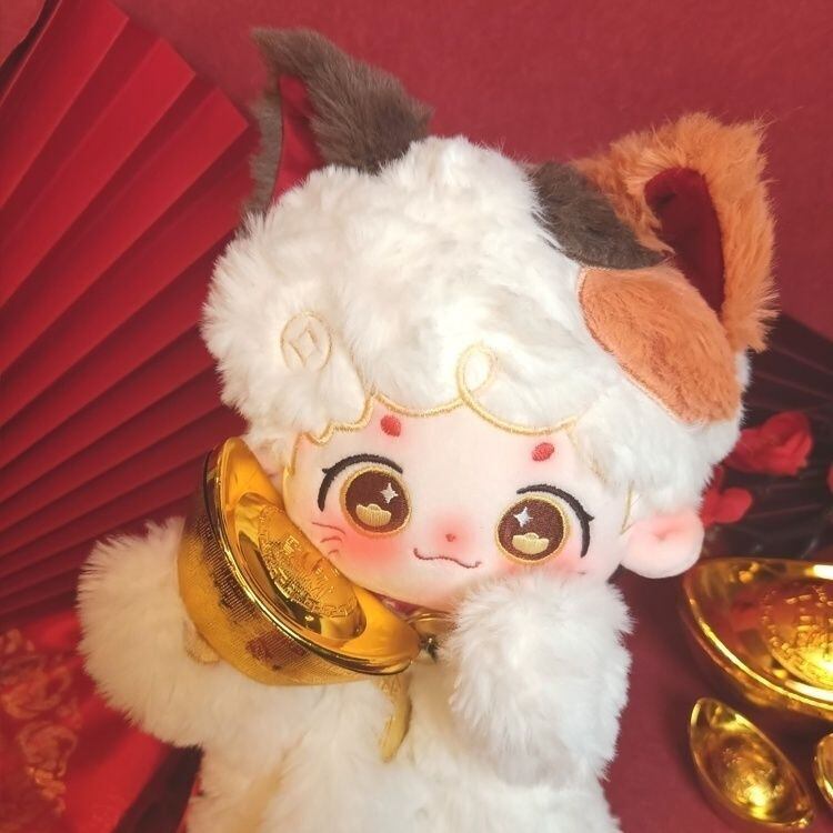 20CM ぬいぐるみ 無属性 着せ替え人形 コットンドール 綿人形 茶色の目白髪二色獣耳財ニャー 獣耳付け cotton doll