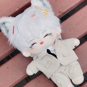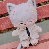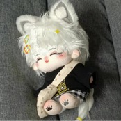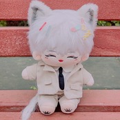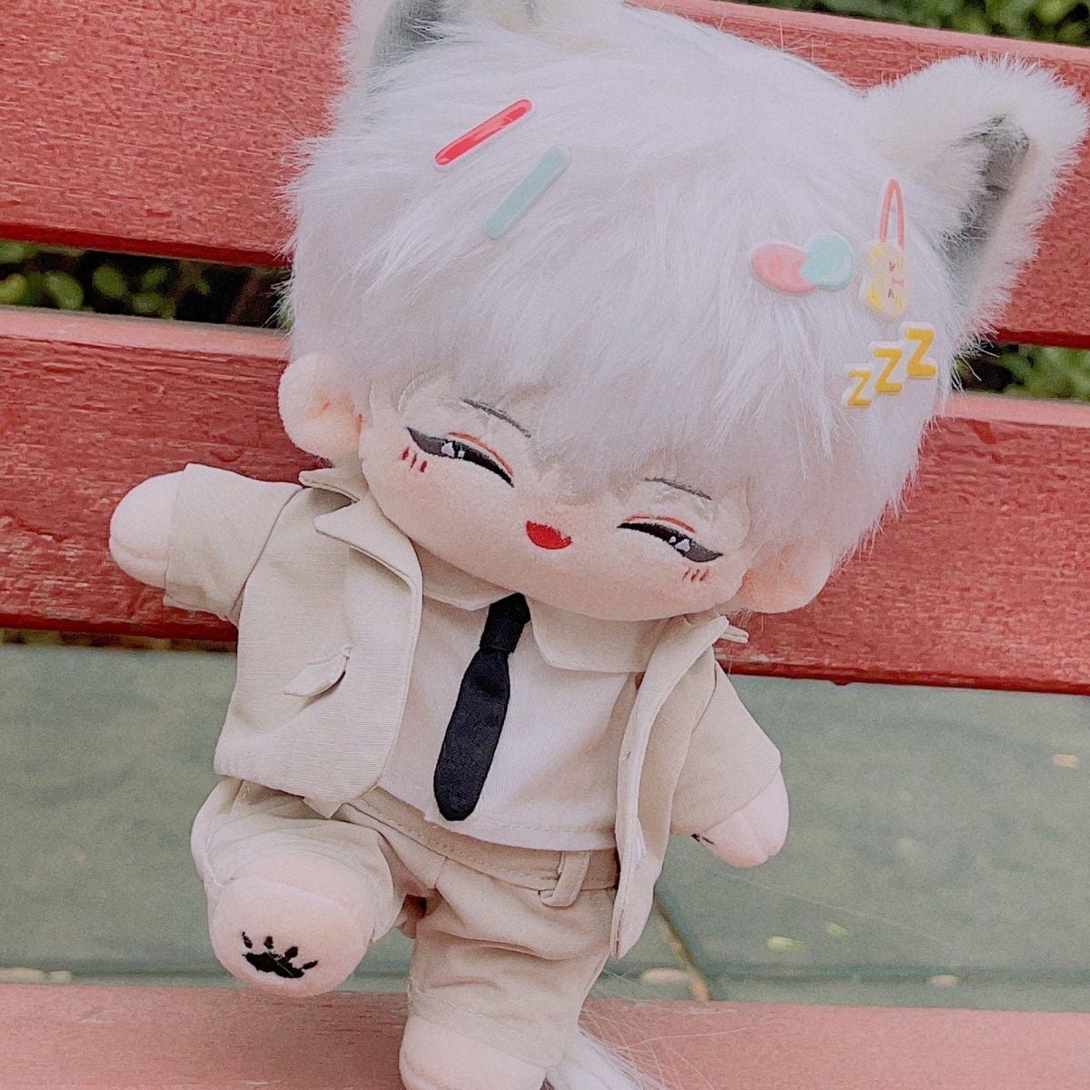 ホワイトヘア 20CM ぬいぐるみ 無属性 かっこいいイケメン 白髪着せ替え人形 目を細めるコットンドール 綿人形 零玄 獣耳付け男の子
