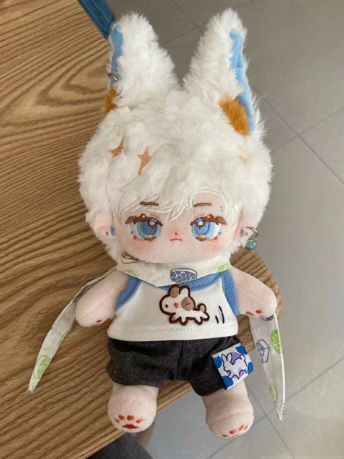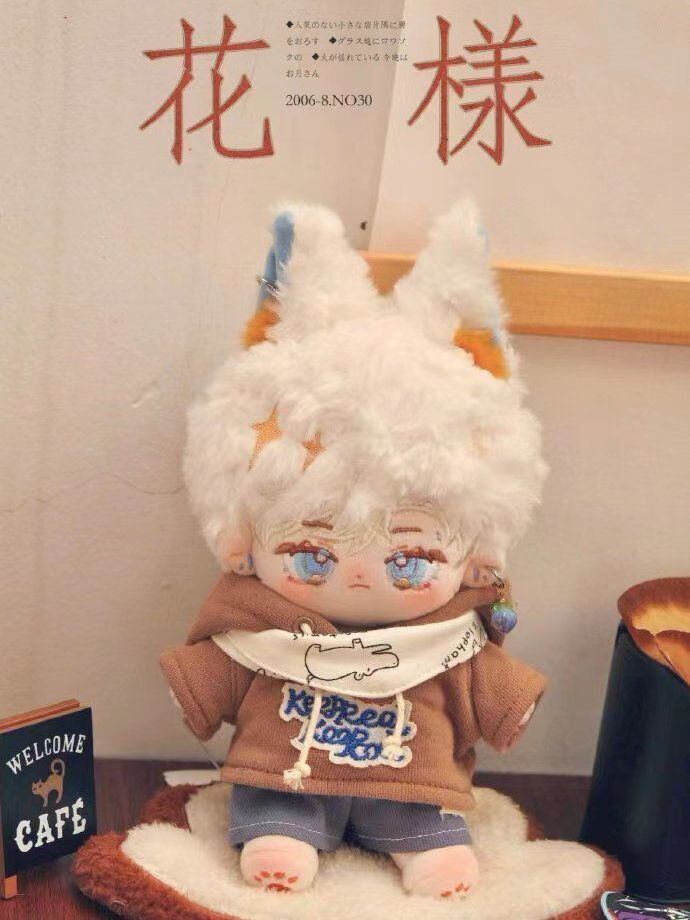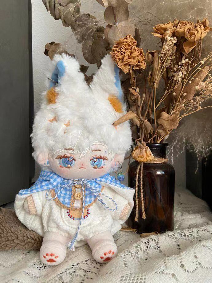 20CM ぬいぐるみ 無属性 着せ替え人形 コットンドール 綿人形 白髪青い目獣耳付け男の子 グリーア cotton doll