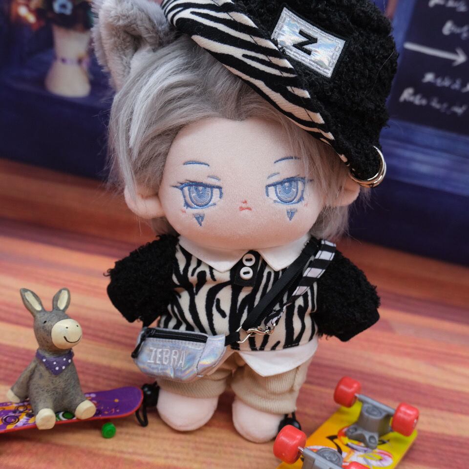 20CM ぬいぐるみ 無属性 着せ替え人形 コットンドール 綿人形 白髪青い目野獣耳付け男の子 キツネ cotton doll