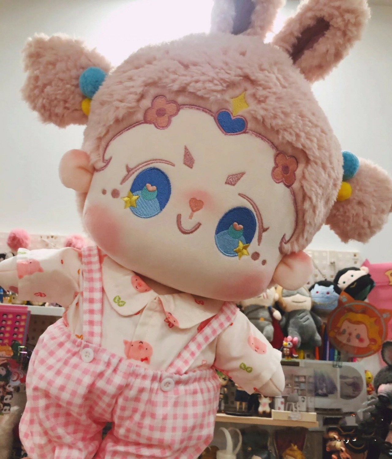 40CM ぬいぐるみ 無属性 着せ替え人形 コットンドール 綿人形 ピンク髪青い目ミルクウサギヒーロー獣耳付け男の子 cotton doll