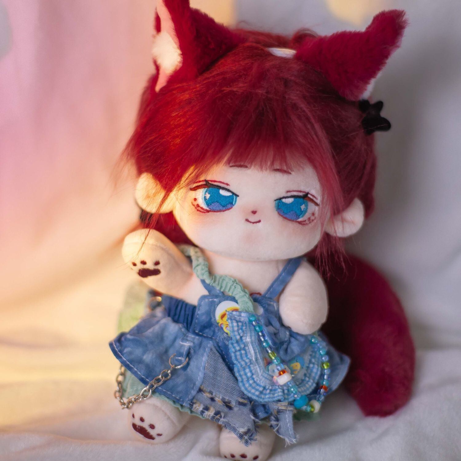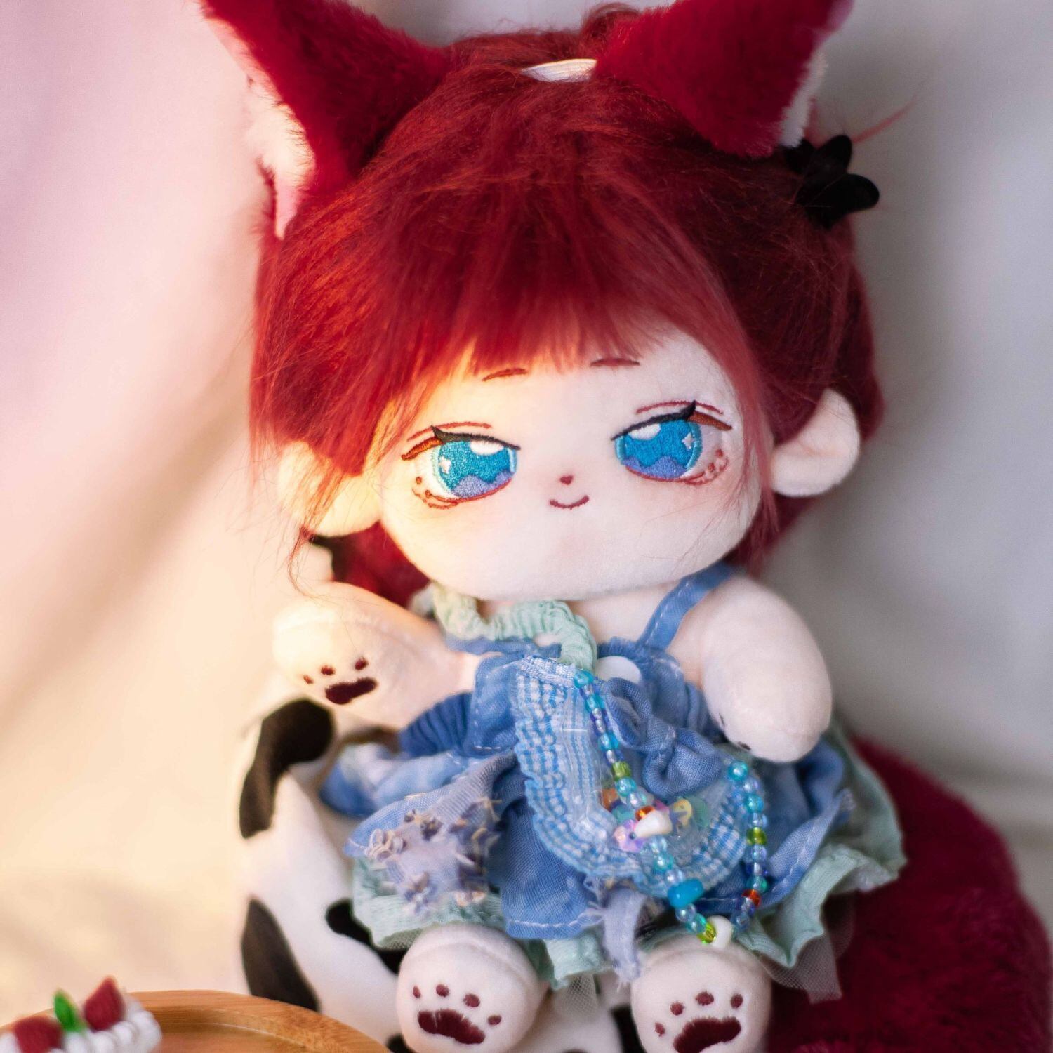 20CM ぬいぐるみ 無属性 着せ替え人形 コットンドール 綿人形 赤髪青い目獣耳付け女の子 cotton doll