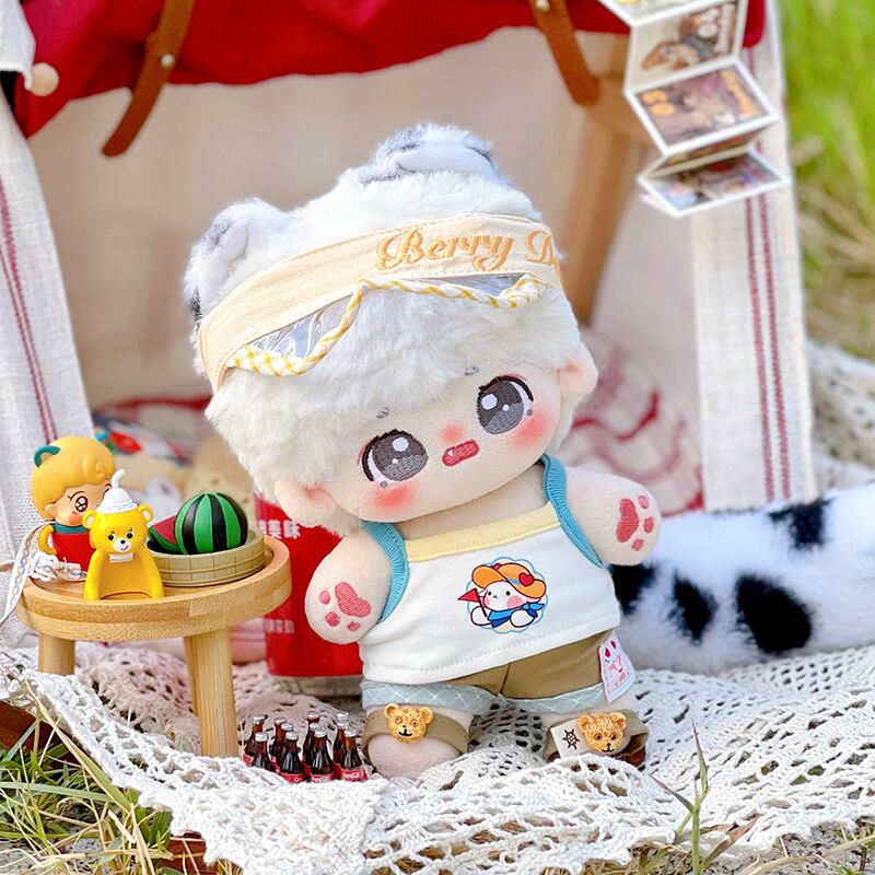 20CM ぬいぐるみ 無属性 着せ替え人形 コットンドール 綿人形 白髪黒目獣耳付け男の子 小雪豹 cotton doll