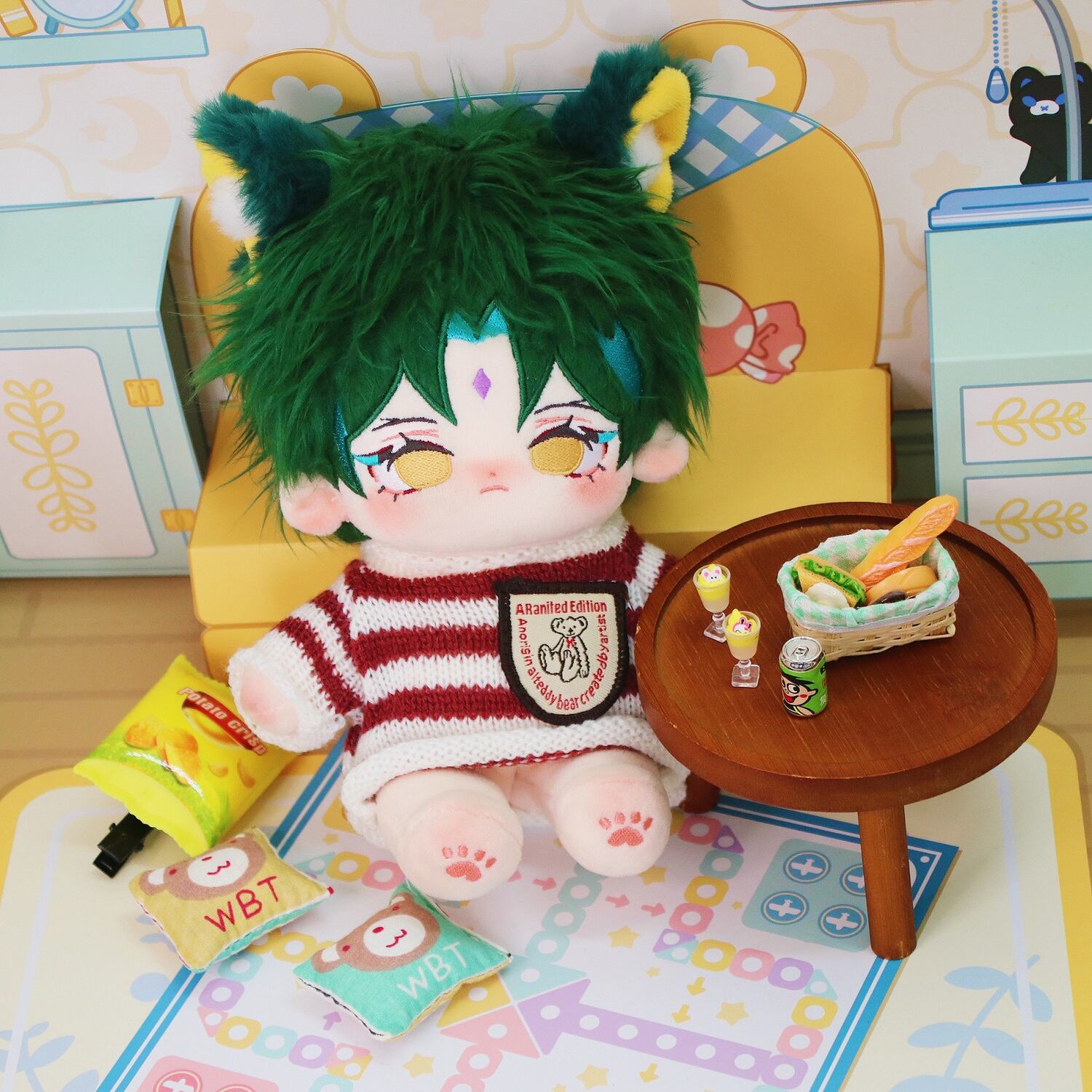 20CM ぬいぐるみ 無属性 着せ替え人形 コットンドール 綿人形 青い髪と黄色い目獣耳付け男の子 原神魈 cotton doll