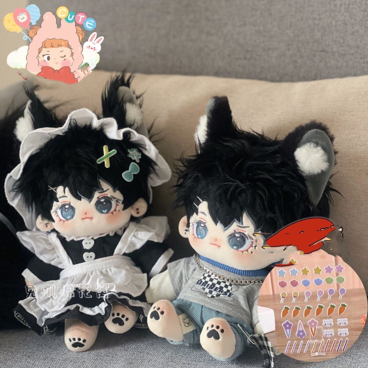 20CM ぬいぐるみ 無属性 着せ替え人形 コットンドール 綿人形 黒髪青い目獣耳付け男の子 藍灣 cotton doll