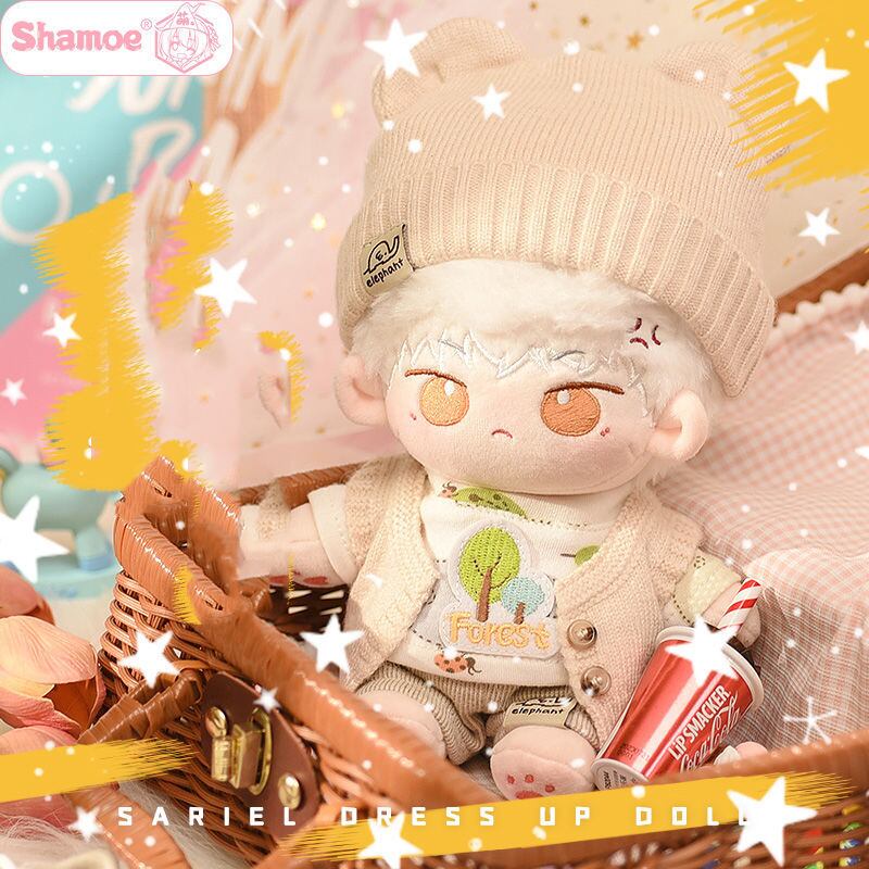 20cm 着せ替えぬいぐるみ 無属性 着せ替え人形 コットンドール 綿人形 獣耳付け白髪男の子 光と夜の愛 チー・シリ cotton doll