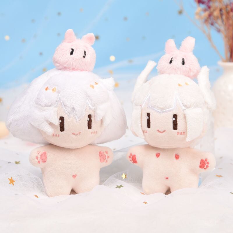 8cm 着せ替えぬいぐるみ 無属性 着せ替え人形 コットンドール 綿人形 白髪男の子 白鳥 ヒラタケ cotton doll