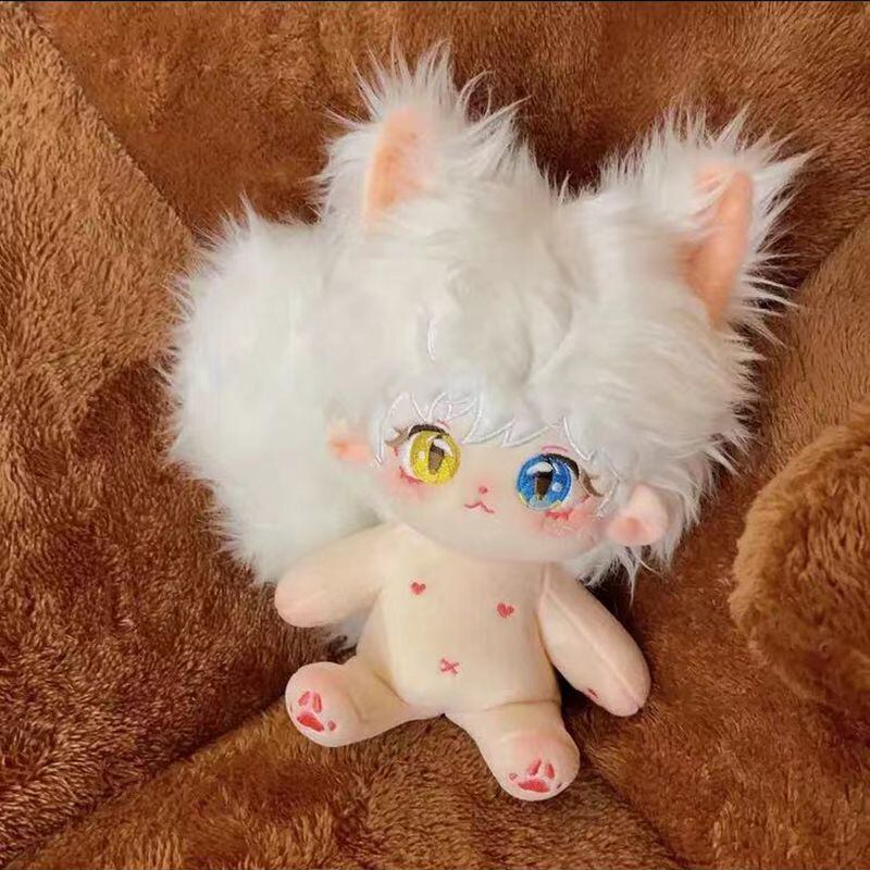 20cm 着せ替えぬいぐるみ 無属性 着せ替え人形 コットンドール 綿人形 三月 異瞳白髪獣耳男の子 cotton doll