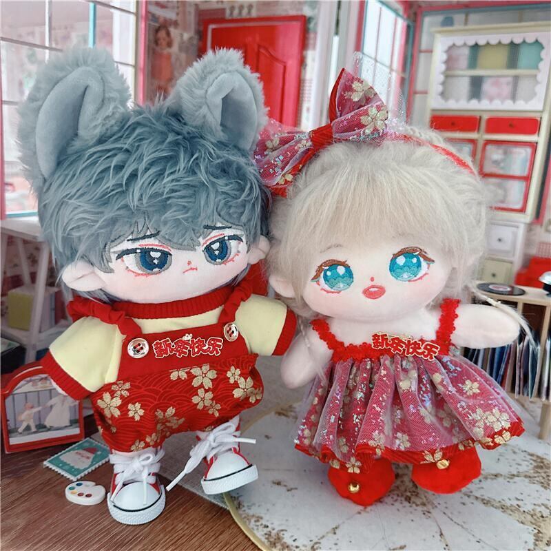 2点セット 20CM ぬい服 着せ替えぬいぐるみ用服 着せ替え人形洋服 綿人形衣装 ドールウェア 着せ替え人形用アクセサリー 赤いお祝い