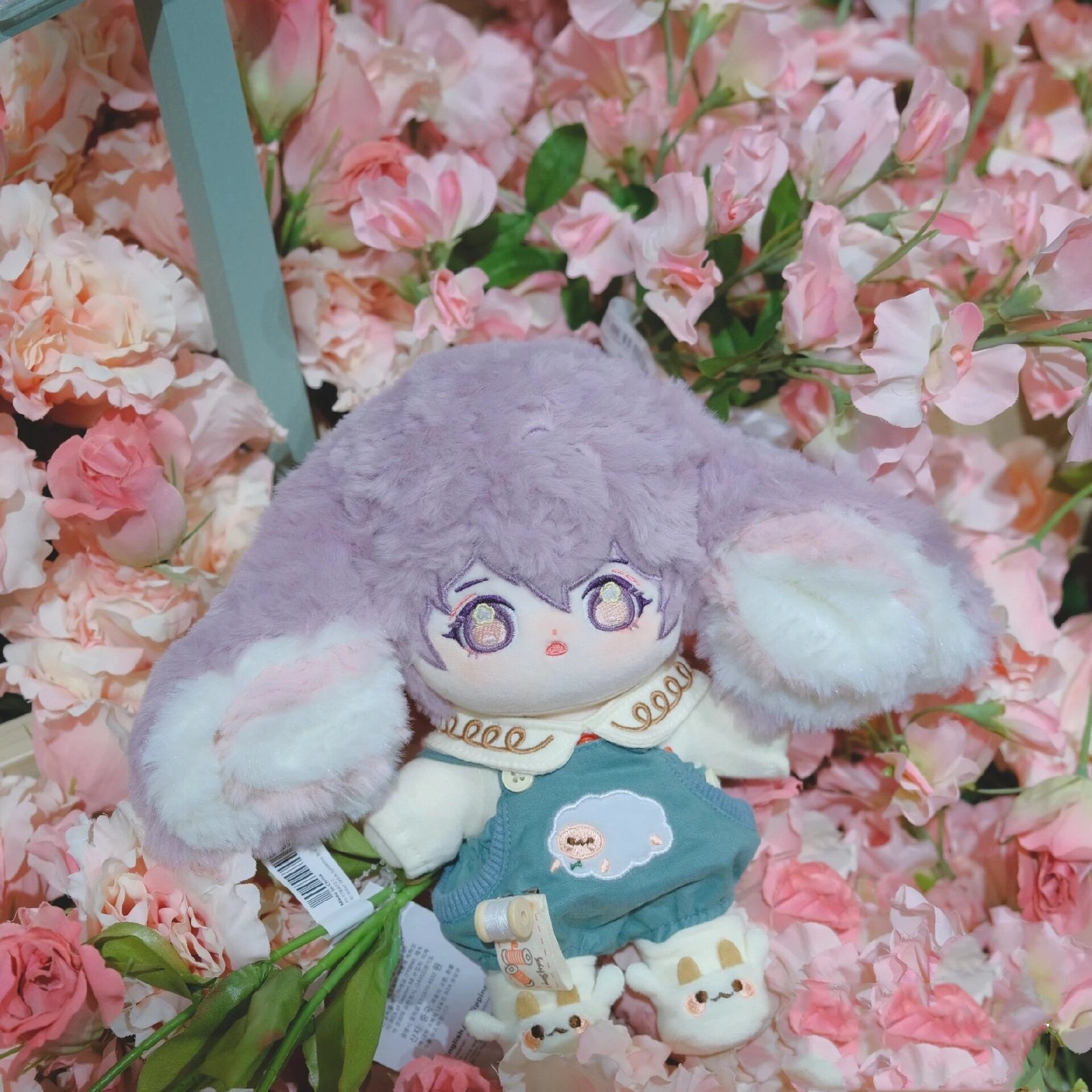 20cm 着せ替えぬいぐるみ 無属性 着せ替え人形 コットンドール 綿人形 紫の髪と紫の目獣耳付け男の子 芋茸 cotton doll