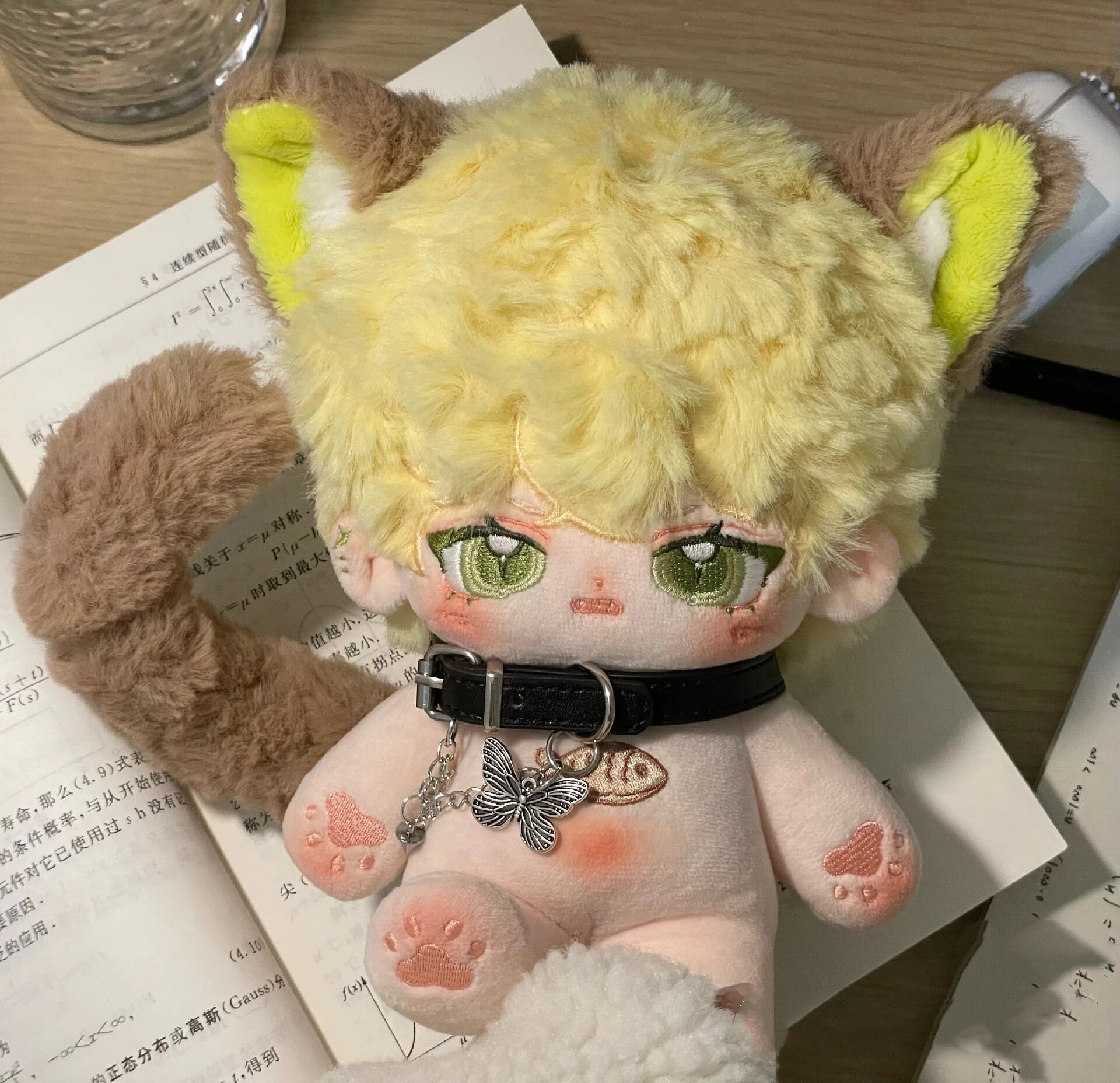 20cm 着せ替えぬいぐるみ 無属性 着せ替え人形 コットンドール 綿人形 レモングリーンの瞳獣耳付け男の子 喵檸 cotton doll